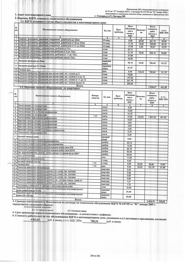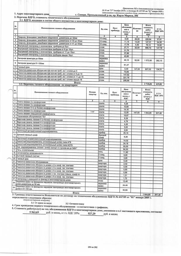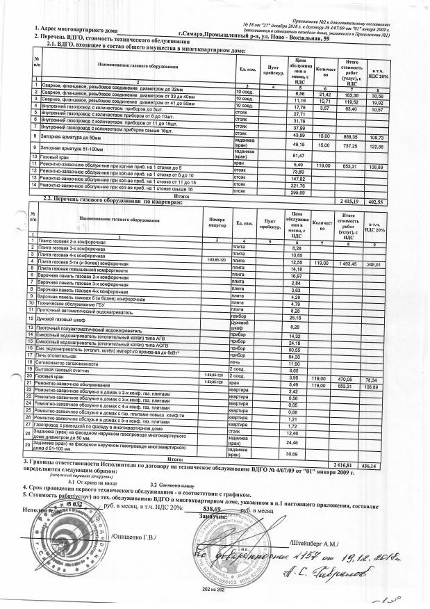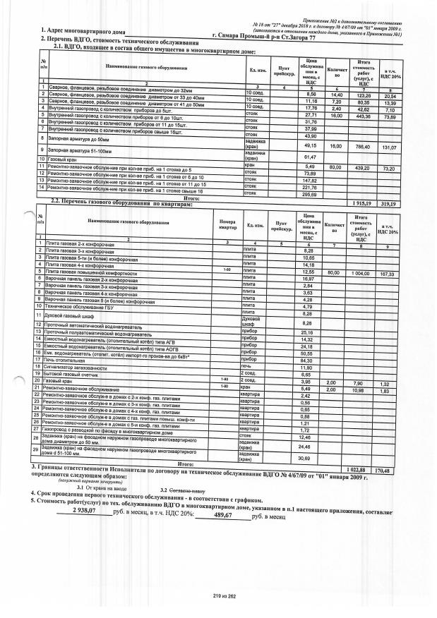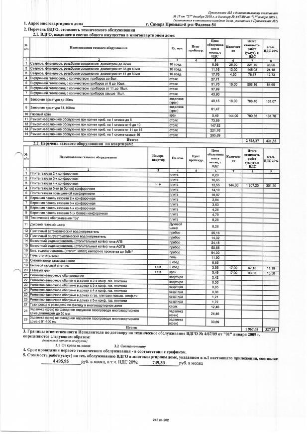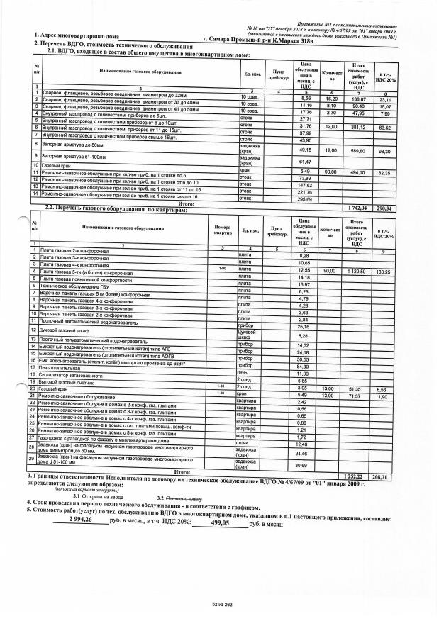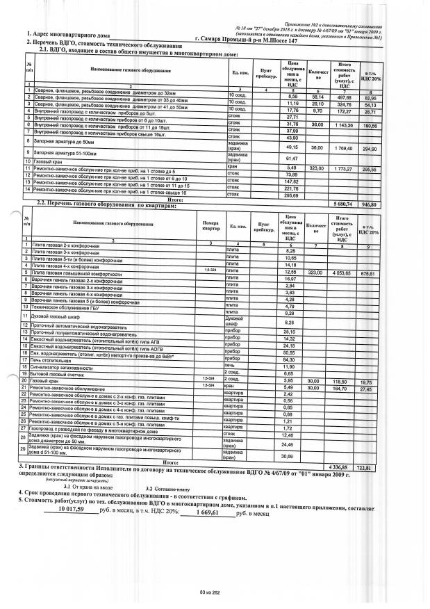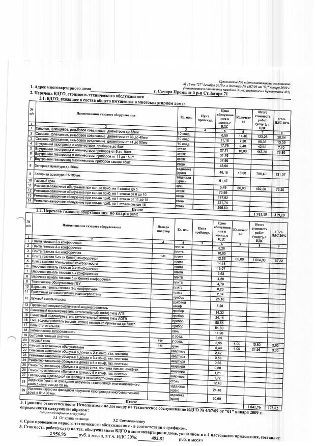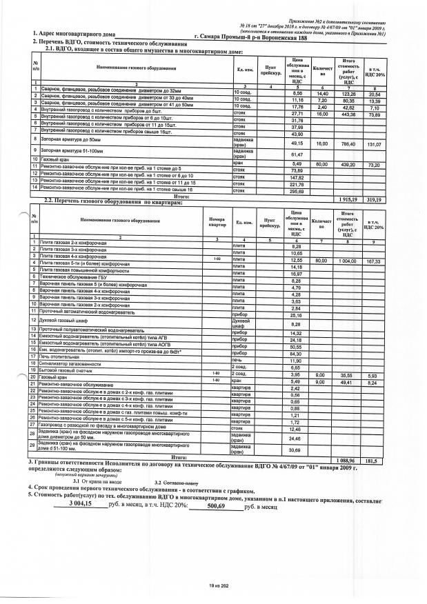 Дополнительное соглашение №18 от 27.12.2018 к договору №4/67/09 от 01.01.2009 на техническую эксплуатацию внутридомового газового оборудования