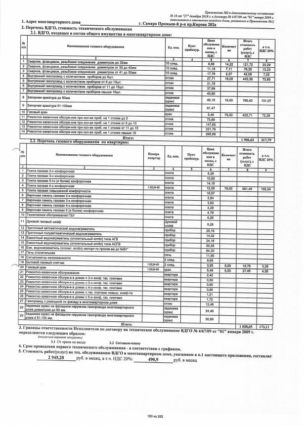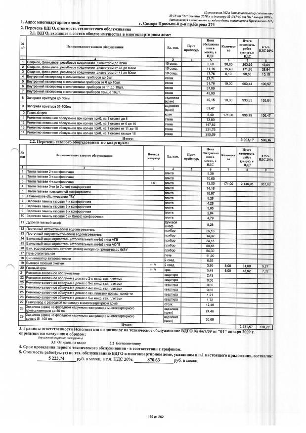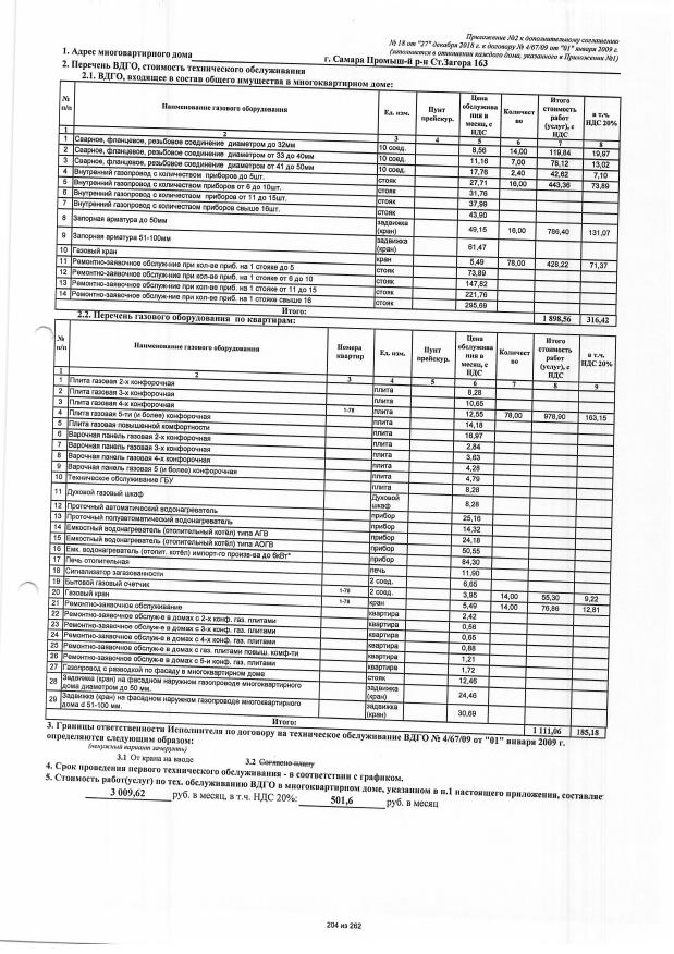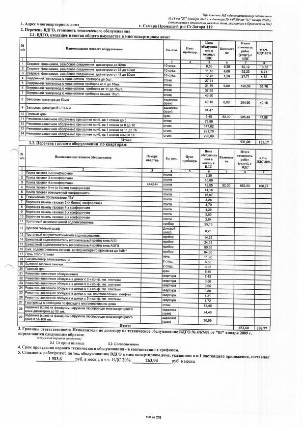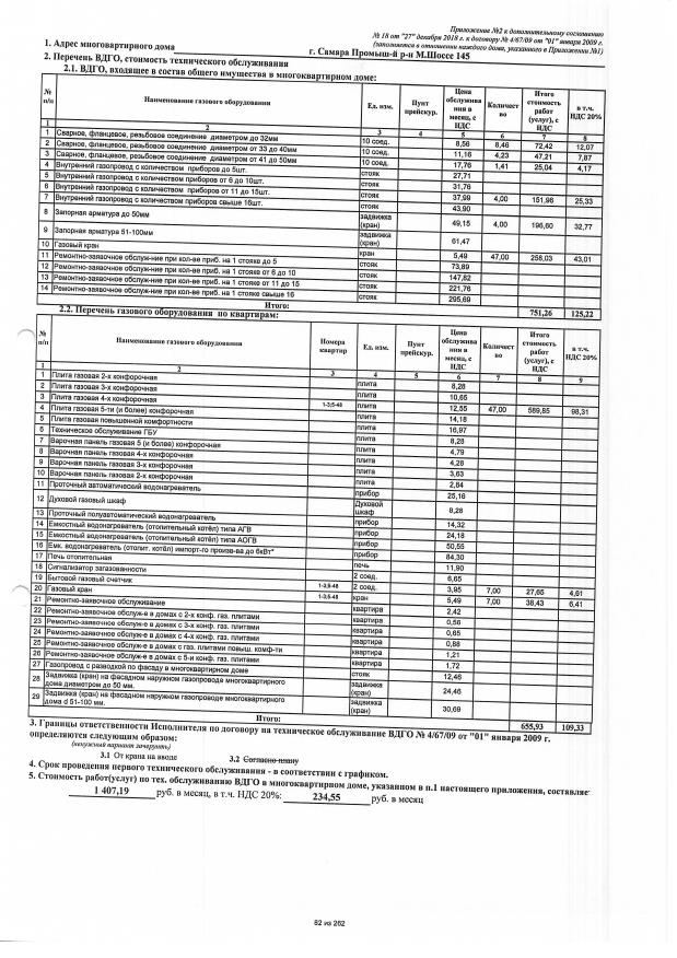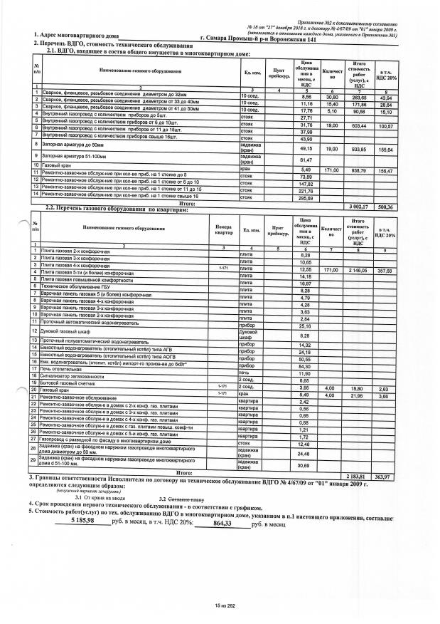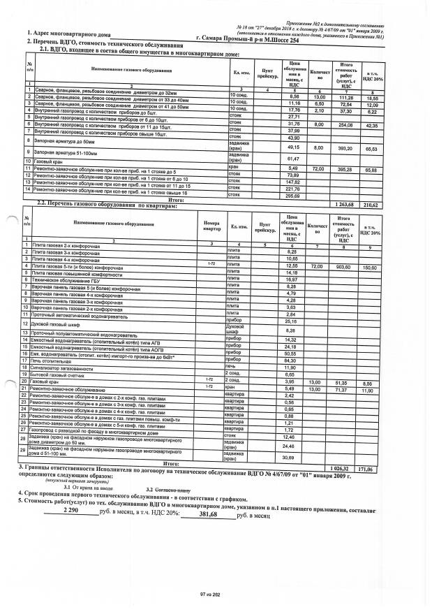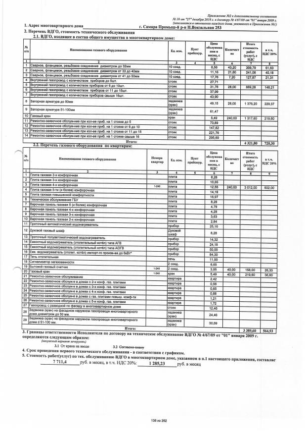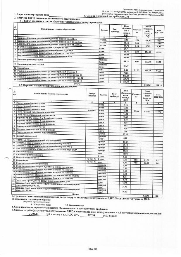Дополнительное соглашение №18 от 27.12.2018 к договору №4/67/09 от 01.01.2009 на техническую эксплуатацию внутридомового газового оборудования
