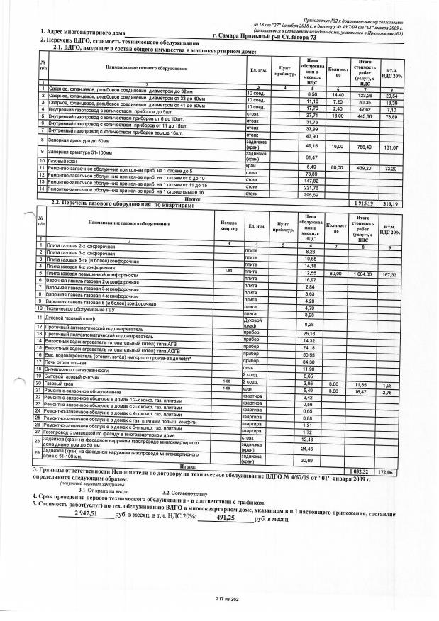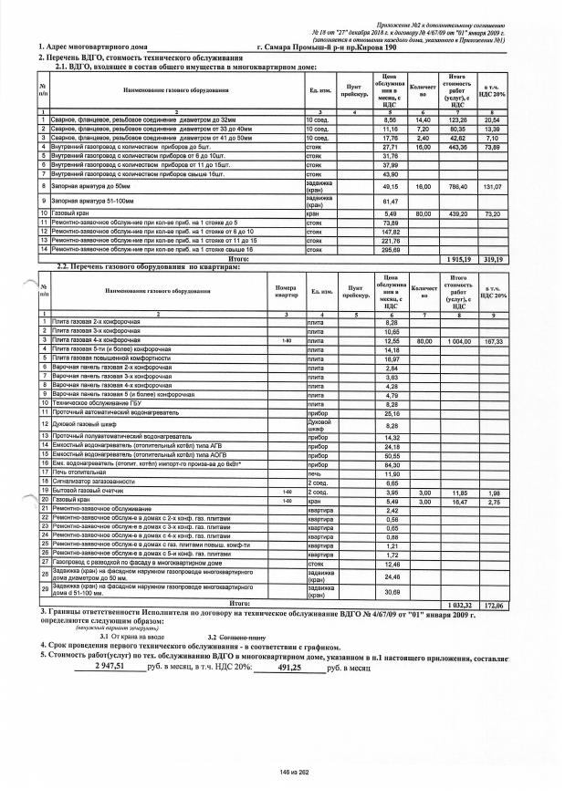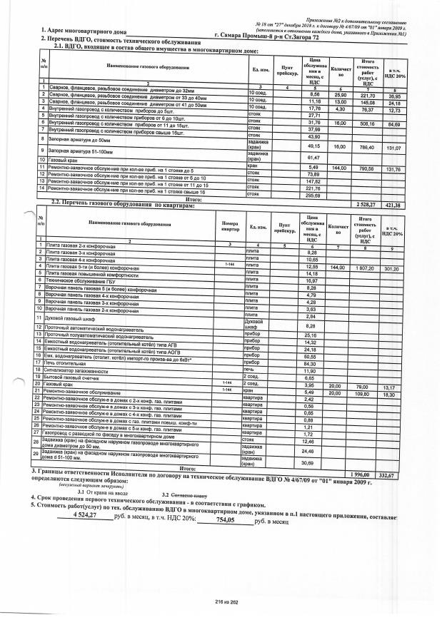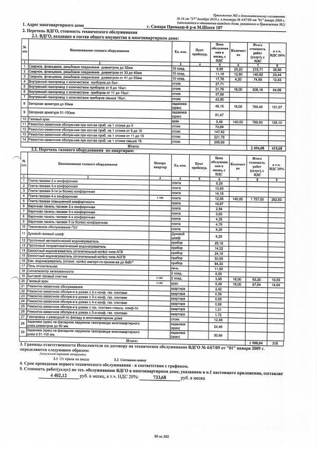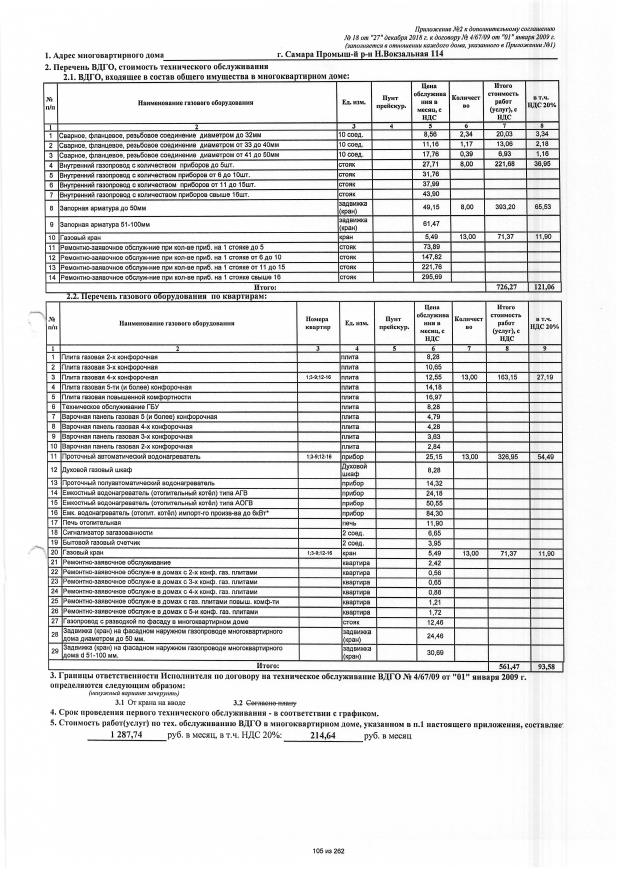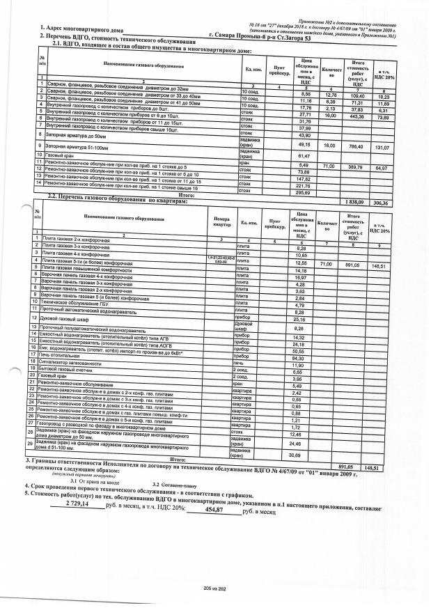 Договор №4/67/09 от 01.01.2009 на техническую эксплуатацию внутридомового газового оборудования