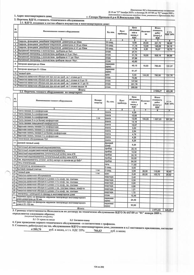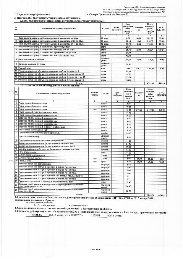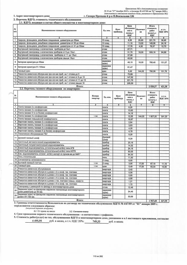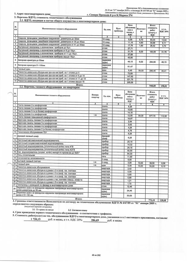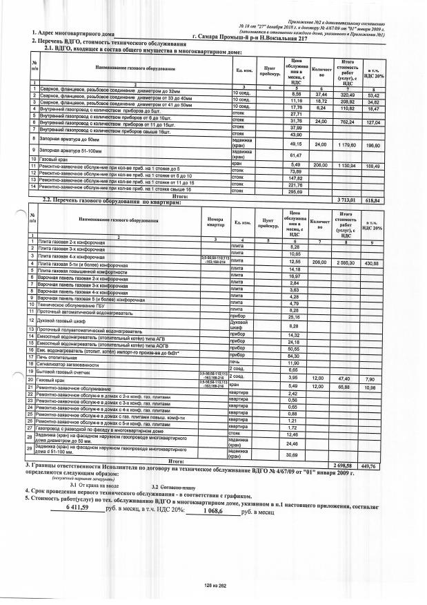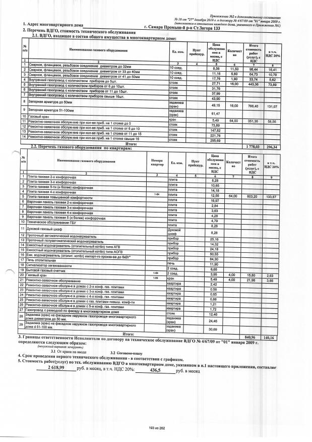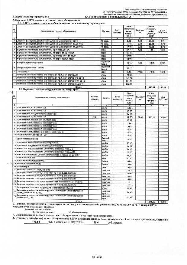 Договор №4/67/09 от 01.01.2009 на техническую эксплуатацию внутридомового газового оборудования